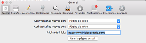 - Donde pone página de inicio, dale al botón «Usar página actual»